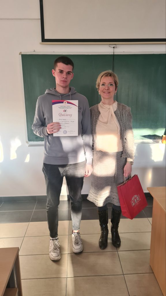Стефан Малетић добио је диплому за освојено друго, а Филип Милекић за освојено треће мјесто у конкуренцији ученика трећих разреда.