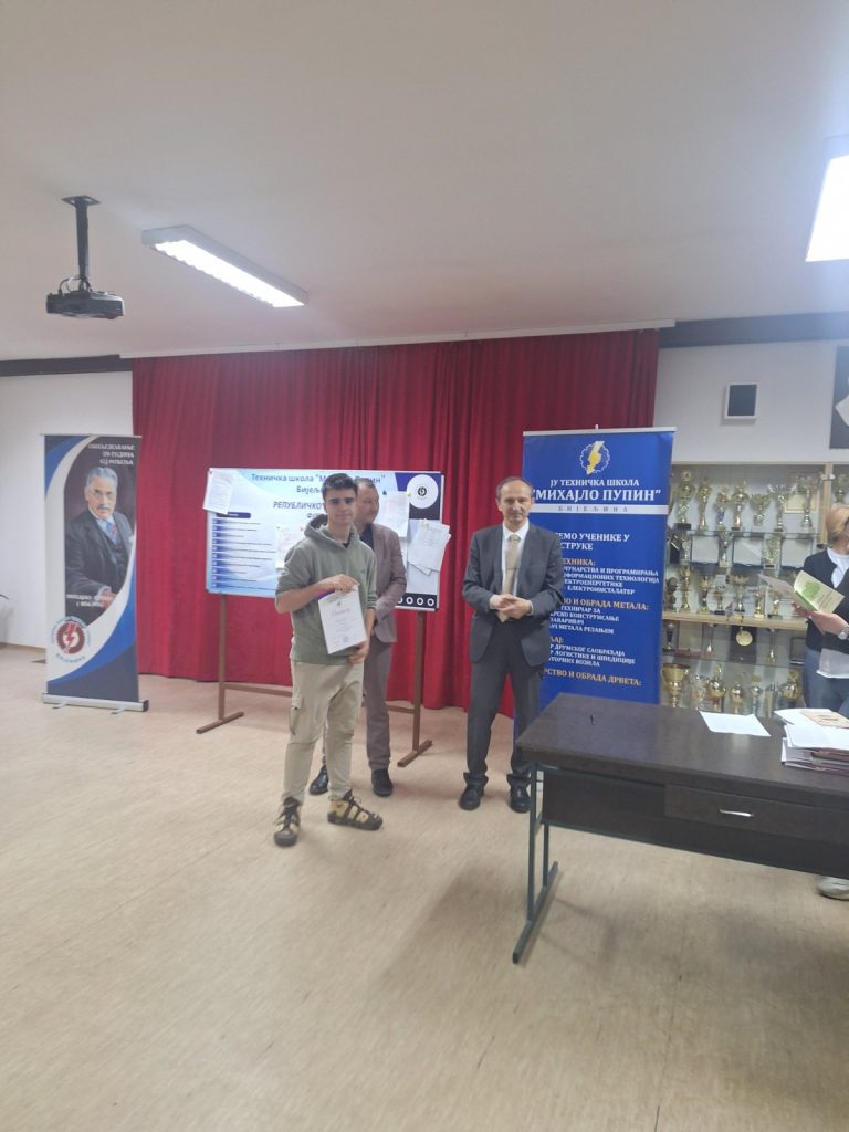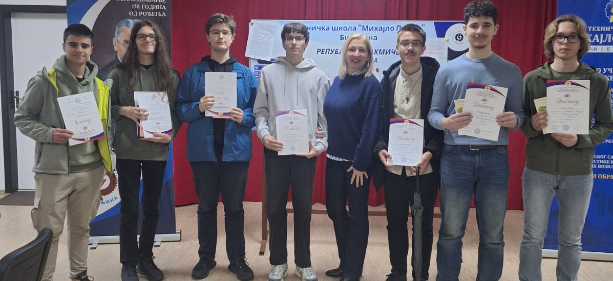 Stefan Maletić, III5, je osvojio 1. mjesto, Andrej Krčmar i Mihajlo Letić, IV5, osvojili su drugo i treće mjesto, dok je Mario Savić, II5, osvojio trece mjesto. Na takmičenju su učestvovali i Ognjen Tuvić, Aleksa Majstorović i Danijel Jakšetić. Svim našim učenicima čestitamo na učešću i ostvarenim rezultatima. Stefanu, Andreju i Mihajlu želimo mnogo sreće na predsojećoj BiH olimpijadi.