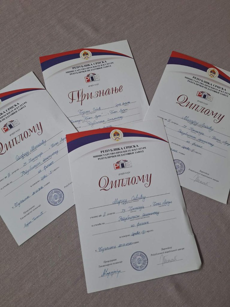 Učenici naše škole ostvarili su zapažene rezultate, čime su još jednom potvrdili kvalitet rada i posvećenost kako učenika tako i nastavnika. Njihov uspjeh je rezultat kontinuiranog rada, truda i ljubavi prema fizici.